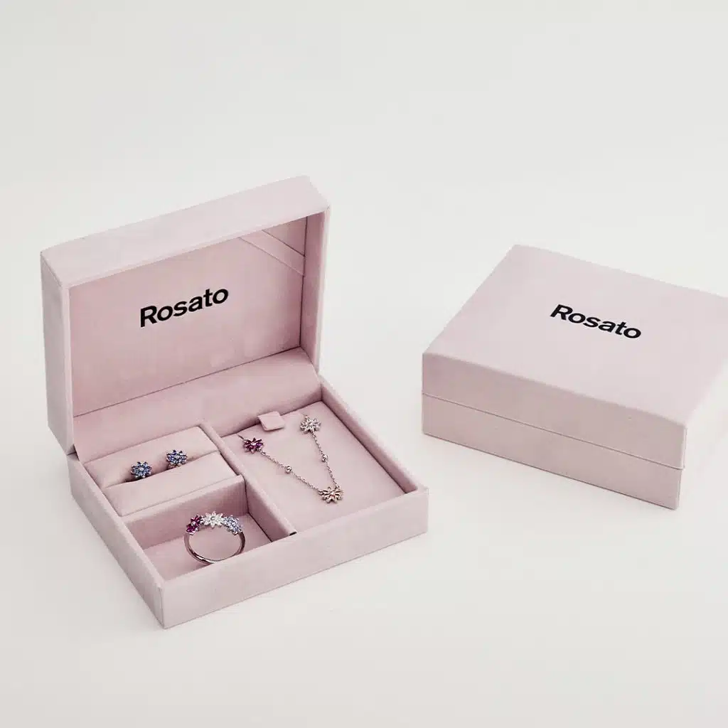 Molto più che un semplice accessorio, un gioiello è un’emozione unica in grado di esaltare la classe e la raffinatezza di una donna. Proprio per questo Rosato ha creato le sue collezioni esclusive, dal design elegante e contemporaneo, ognuna con un’ispirazione diversa. Ogni ornamento lavorato dei gioielli Rosato è prezioso spesso e di alta qualità. Potrai trovare stupendi anelli con pietre, anelli in argento 925 oppure elegantissime collane lunghe o collane choker. Tantissime combinazioni che ti permetteranno di esprimere al massimo il tuo stile per un look sempre diverso. Nel catalogo Rosato trovi bracciali rigidi o bracciali con ciondoli, scegli quello che meglio si combina con la tua personalità.
