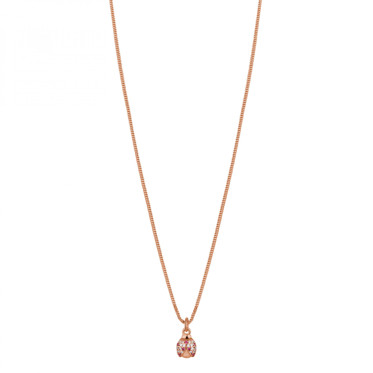 Collana corta in argento 925‰, placcatura oro rosa, 16 cubic zirconia bianchi, 7 cubic zirconia rossi e pendente a forma di coccinella